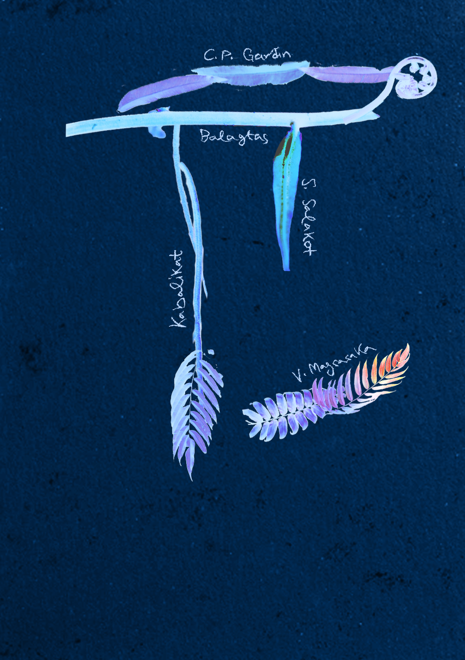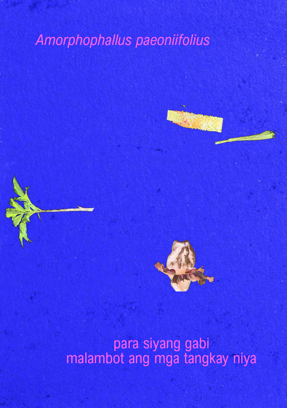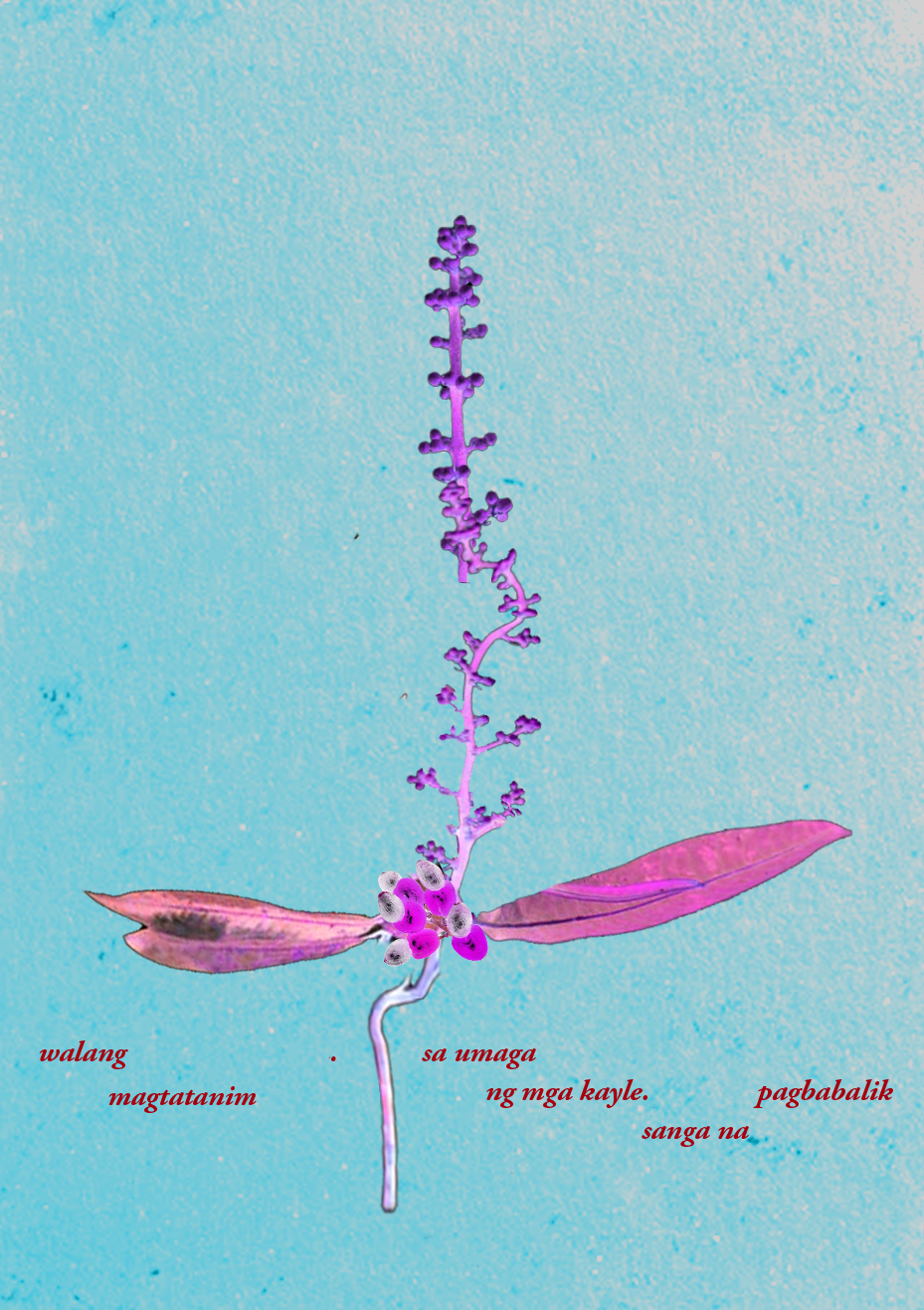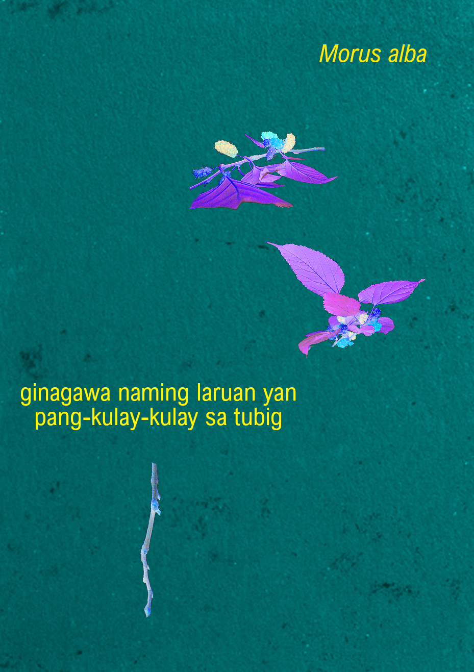 This series maps the remaining streets using three overlooked or now missing plants in Krus na Ligas's history: the Mulberry (Morus alba), Pungapong (Amorphophallus paeoniifolius), and Pongamia (Pongamia merrillii). Each piece pairs a plant with a direct textual fragment from an interview conducted during the research process, enjambed poetically.